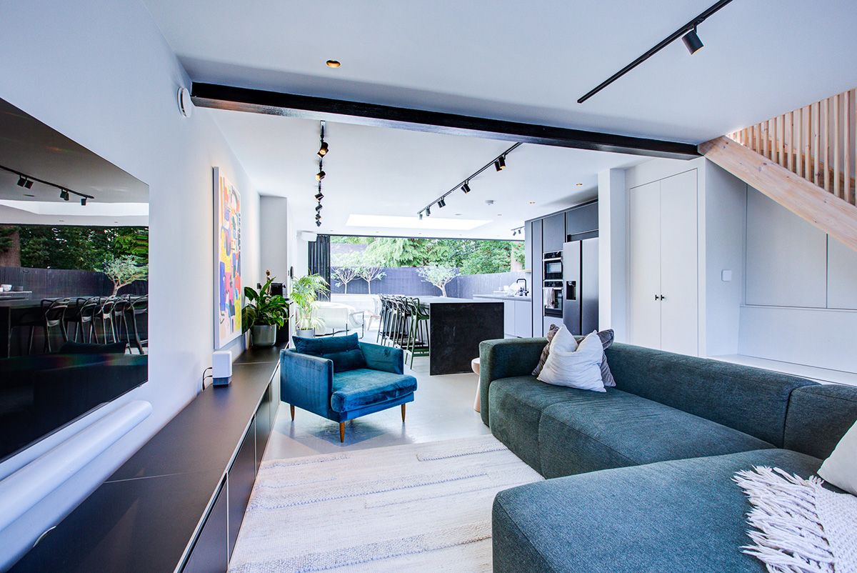 As the brief called for a clean, single-level living space, particular attention was given to the management of ground levels. To achieve this, existing internal floor levels were carefully reduced, allowing for a new suspended floor construction and the full build-up required for underfloor heating. This approach ensured consistent finished floor levels throughout, delivering a seamless and well-resolved result.
